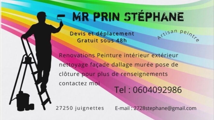 Bienvenue dans l'univers de Prin Stéphane, votre artisan peintre à juignettes Découvrez notre engagement envers la qualité et un service impeccable. Ensemble, donnons vie à vos projets et embellissons votre quotidien. Nous sommes ravis de vous accueillir et de faire partie de votre histoire.